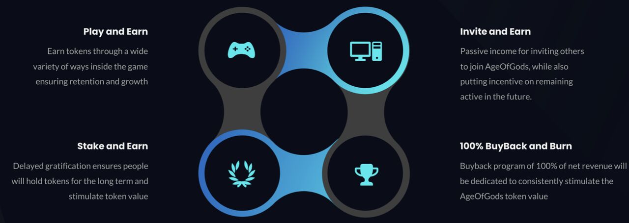 De native token van AgeOfGods is de $AOG token. Die tokens kunnen in het spel gebruikt worden om te levellen, gear en in-game items te kopen. Dit zorgt er tevens voor dat beginnende spelers al direct met sterke karakters en gear aan de slag kunnen gaan.