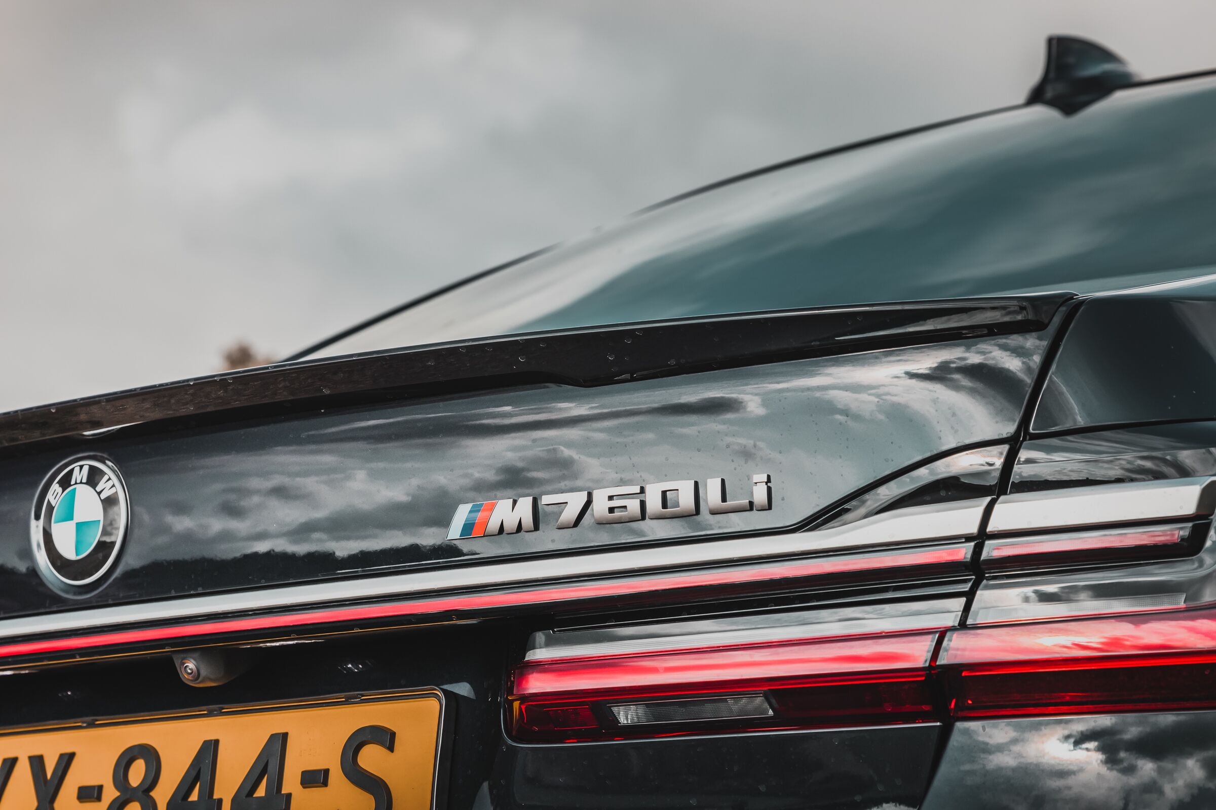 Is de BMW M760Li voorbij gevlogen kijk je tegen de nieuwe kont met als meest opvallende verandering het doorlopende LED achterlicht die de achterkant siert.
