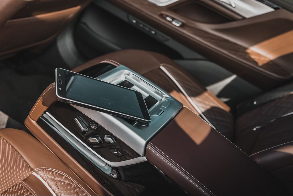 Omringt door schermen waar je systemen en multimedia mee tot je beschikking hebt zul je je dan ook niet vervelen. Uiteraard houdt de VIP achterin ook van enige privacy die gecreëerd wordt met de elektrisch bedienbare zonnewering en is er een koelkastje aanwezig om een flesje champagne in koud te zetten. Vier-zone climate control? Check. Een sublieme geluidsinstallatie van Bowers & Wilkins? Check.