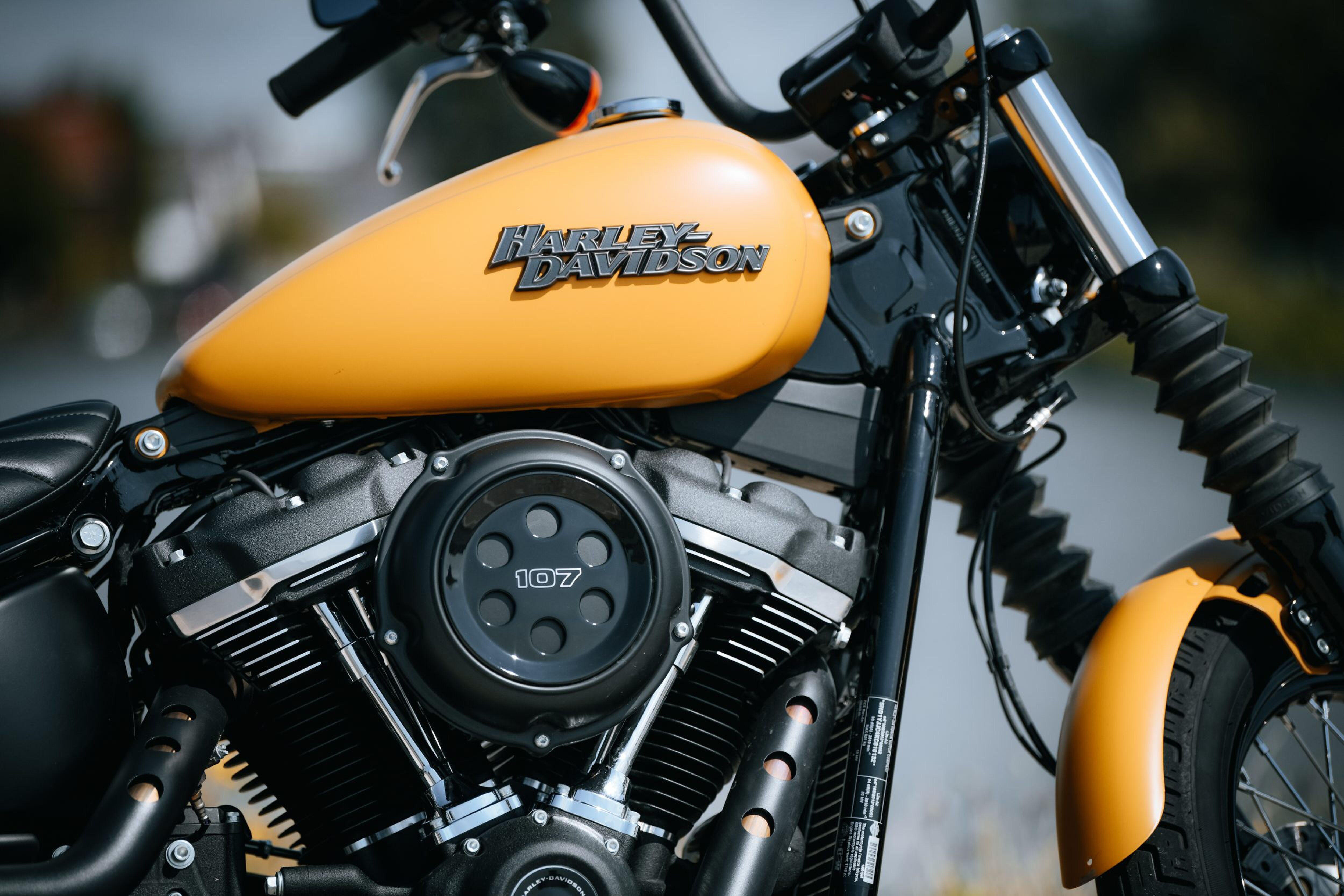 De Harley-Davidson Street Bob beschikt over deze Milwaukee-Eight 107 motor. Een V-Twin motor met 1.745 cc en 145 Nm met een heerlijk geluid en een scherpe gasrespons. Het motorblok heeft een aantal innovaties begaan op zijn voorganger, zo produceert de Milwaukee-Eight 107 onder andere meer vermogen en een snellere acceleratie. Ook is het blok zuiniger, zorgt het voor minder vibraties en voor een rijker uitlaatgeluid.