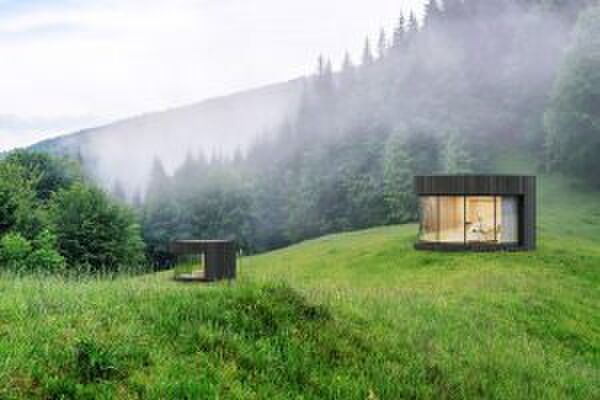 Het merk Lumicene staat bekend om haar expertise als het gaat om gekromd glas. Hier maken ze optimaal gebruik van bij hun nieuwste creatie, genaamd Lumipod prefab cabin. Het bouwwerkje beslaat slechts 17 vierkante meter, toch oogt het van binnen heel ruim door de eerdergenoemde raampartij. Het huisje heeft een ronde vorm, is gemaakt van aluminium en is bekleed met planken van gebrand hout. Hierdoor gaat de Lumipod beter op in een natuurlijke omgeving.