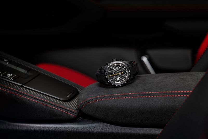 De wereldpremière van de Porsche 718 Spyder RS is in juni. De prijs volgt nog, maar we kunnen rekenen op een hoog prijskaartje. De GT4 RS begon namelijk bij 246.300 euro en de prijs van de Porsche 718 Spyder RS zal vast iets hoger liggen. Ben je van plan de auto te gaan kopen? Dab krijg je een dik horloge cadeau. Dit handgemaakte cadeau heeft lichte titanium behuizing, een wijzerplaat van carbon en het bandje is gemaakt van hetzelfde leer dat gebruikt wordt voor in de stoelen van de auto. Draai je het horloge om, dan kan je zien dat het design is geïnspireerd op de velgen van de 718 Spyder RS.