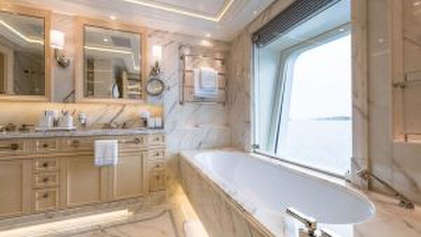 De omvang van het interieur laat gelijk zien dat aan alles is gedacht. De boot is rijkelijk voorzien van slaapvertrekken zodat er plaats in voor 12 gasten. Dit is verdeeld over zes luxe- en ruim opgezette vertrekken. Naast de vertrekken voor de gasten is er ook voldoende accommodatie voor de 18-koppige bemanning plus de kapitein van de boot.